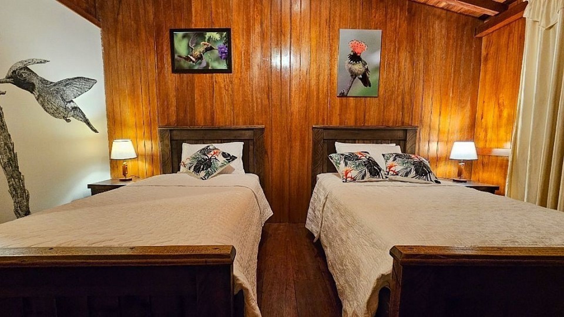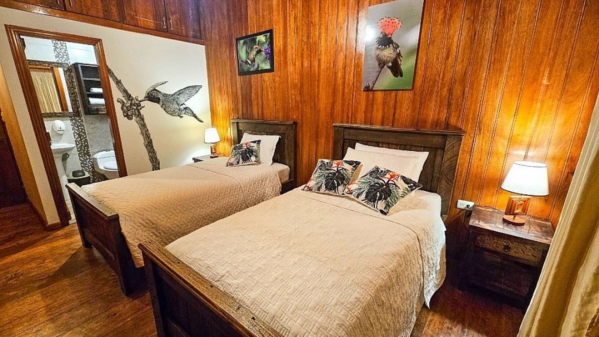 The Coqueta Room at Buglas Birding Lodge is a comfortable and peaceful space in Limón Indanza, Ecuador, ideal for relaxing in the middle of nature. It features two twin beds, a private bathroom, WiFi, hot water, and an outdoor balcony, perfect for unwinding after a day of exploration. Breakfast included.